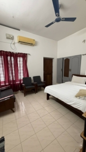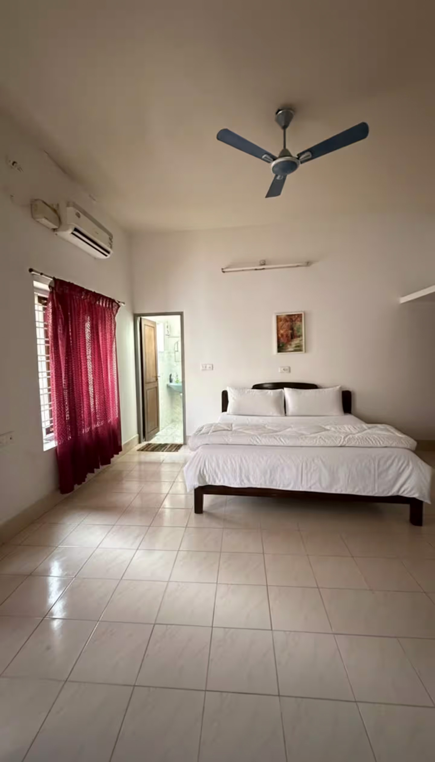 The stay offers air-conditioned rooms with ceiling fans, spacious bedrooms , wardrobe space, seating area, and private attached bathrooms with western-style toilets and hot water. Enjoy good ventilation, natural light, and a calm, well-maintained environment.